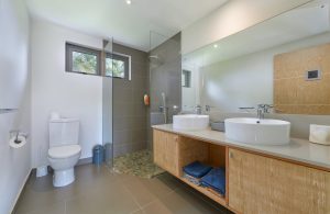 La villa dispose d’une cuisine entièrement équipée et américaine, de 3 chambres en suite et d’un générateur.