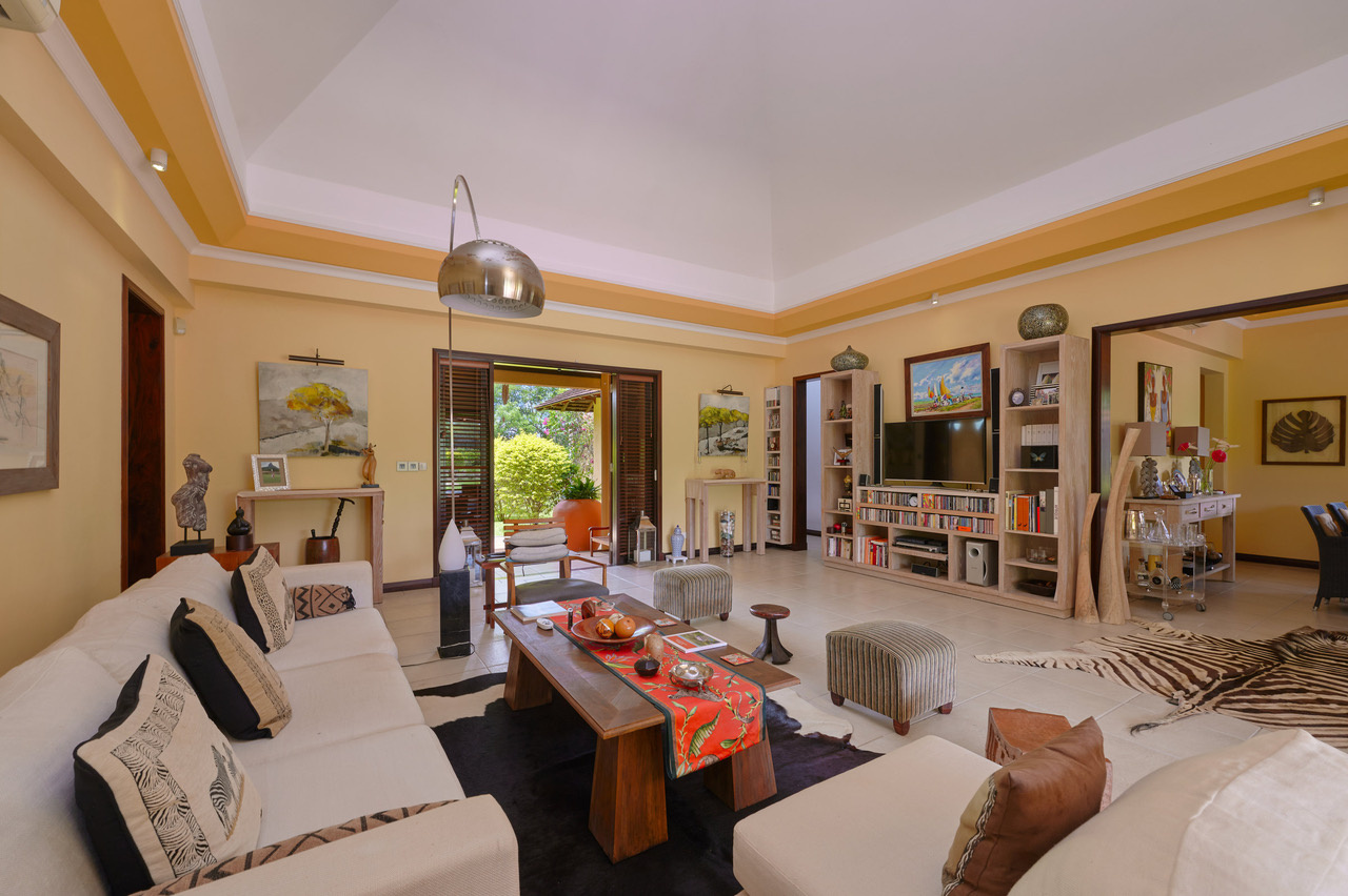 Découvrez une belle villa plain-pied de 428 m2 très bien entretenue avec un design de type Africain à Tamarin Golf.
