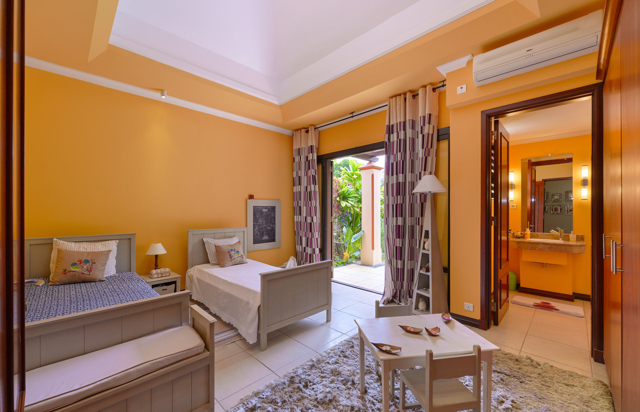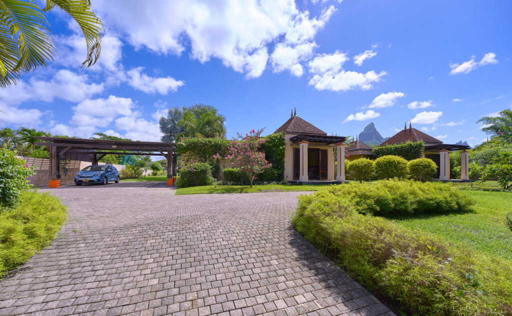 Cette villa est installée dans une résidence sécurisée 24h/24h dans un petit village calme et ressourçant près des comodités. Vous aurez accès au Golf Cart et également un accès au Tamarina Beach Club.