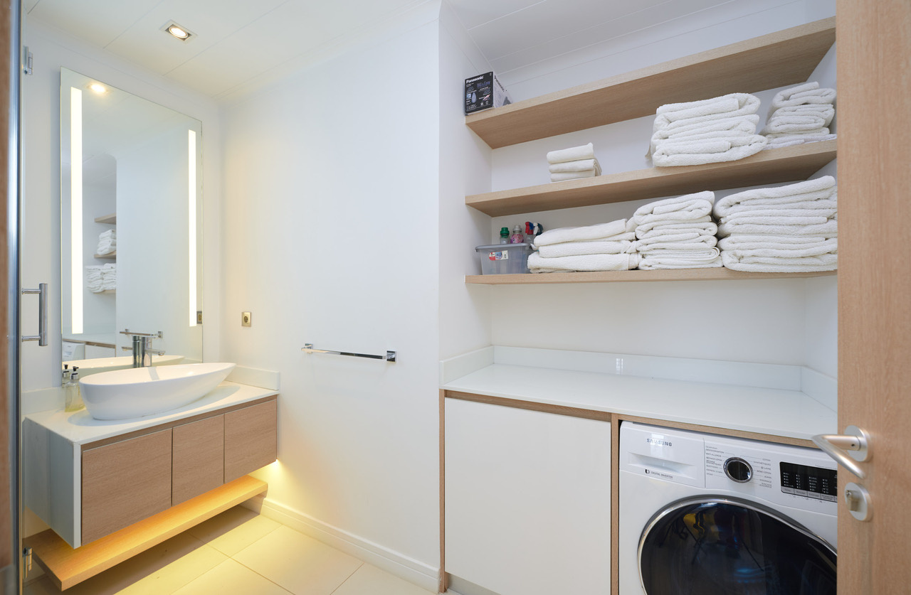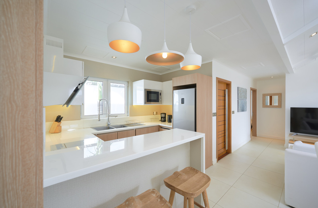 Une cuisine américaine équipée vous attends pour concocter de savoureux repas. Un coin buanderie est aménagé dans les sanitaires. Une des chambres dispose d’une télévision en face du lit.