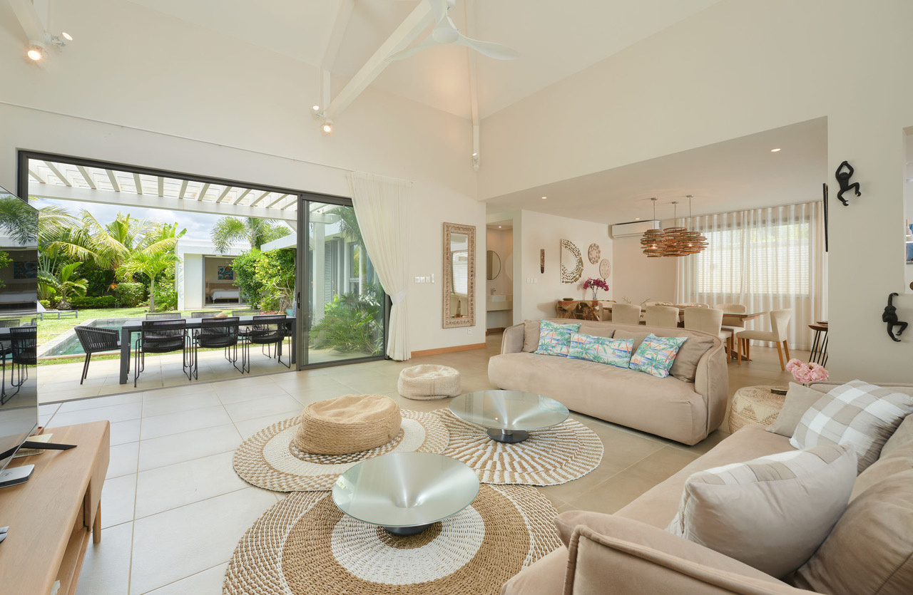 Laissez-vous séduire par cette splendide villa de plain-pied, entièrement meublée et climatisée, d’une surface de 197 m2, idéalement située à Grand Baie La Salette. Elle se compose de 3 chambres en suite ainsi que d’un studio indépendant, offrant une flexibilité parfaite pour accueillir famille, amis ou même pour un espace de travail privé.